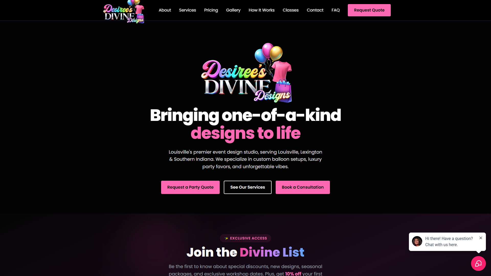 Louisville's premier event design studio — custom balloon setups, luxury party favors, and unforgettable vibes.