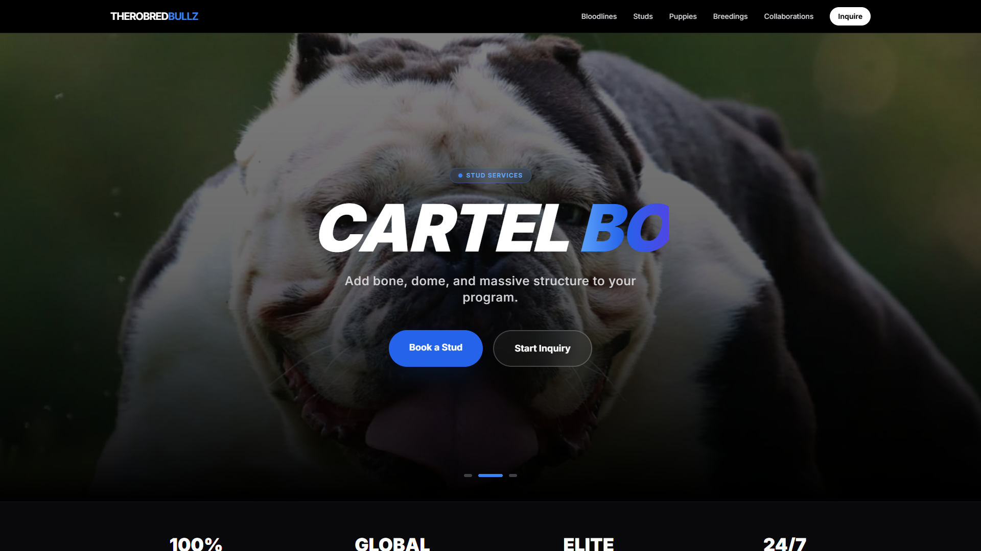 Elite bulldog breeding program site — bloodlines, studs, puppies, and breeding inquiries.
